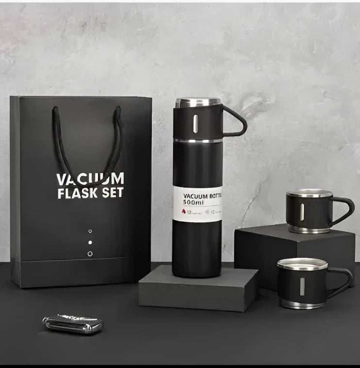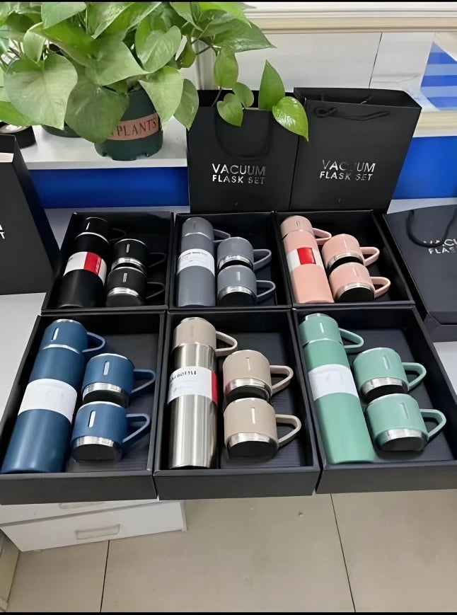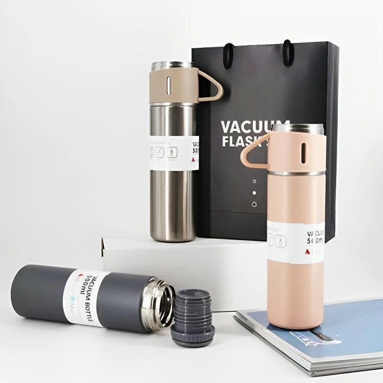 - Stainless Steel Vacuum Insulated Double Wall Water Bottle with 2 Cups. Idle for carrying both hot and cold beverages.